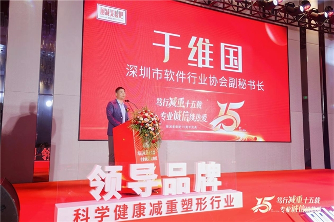 行业伙伴齐聚庆典现场,共叙发展,展望未来。深圳市软件行业协会副秘书长于维国、容大生物董事长韩敏、深圳职业经理人发展研究会会长郑志宏、丽减美瘦吧组织成长教练张霞老师先后登台致辞。他们分别从行业趋势、技术赋能、品牌战略与组织发展等多个维度,对丽减美瘦吧十五年取得的成果给予了充分肯定,并表达了进一步深化合作、共同推动健康减重行业高质量发展的美好愿景。